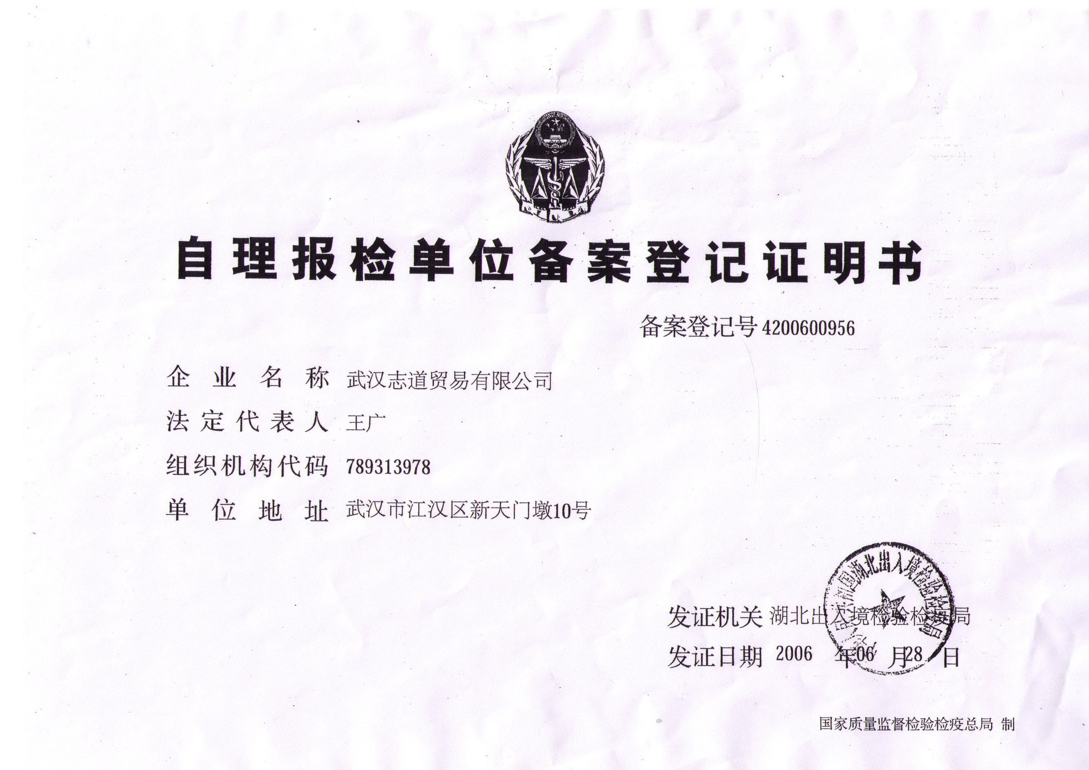 自理報(bào)檢證明書(shū)