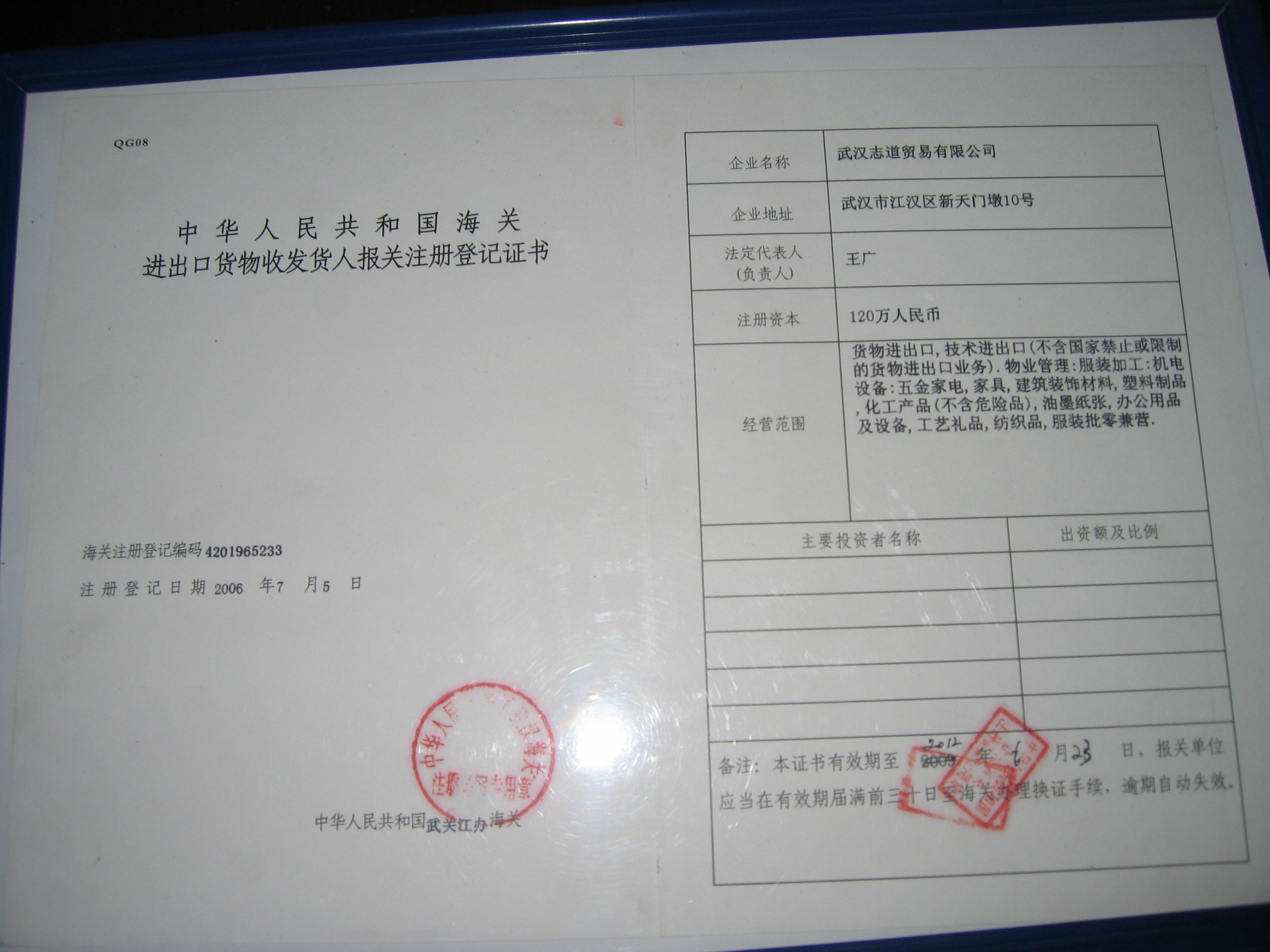 報(bào)關(guān)注冊(cè)登記證書(shū)